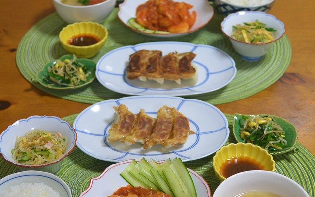 献立 エビチリ カリフラワーと茄子のガーリック醤油炒め キムチ ほうれん草のナムル 白菜と根菜のスープ ワイン Kajuの 今日のお料理 簡単 レシピ